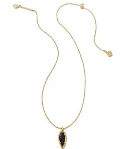 Kendra Scott Skylar Vintage Gold Short Pendant Necklace In Black Banded Agate