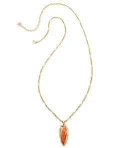 Kendra Scott Skylar Vintage Gold Small Long Pendant In Orange Banded Agate